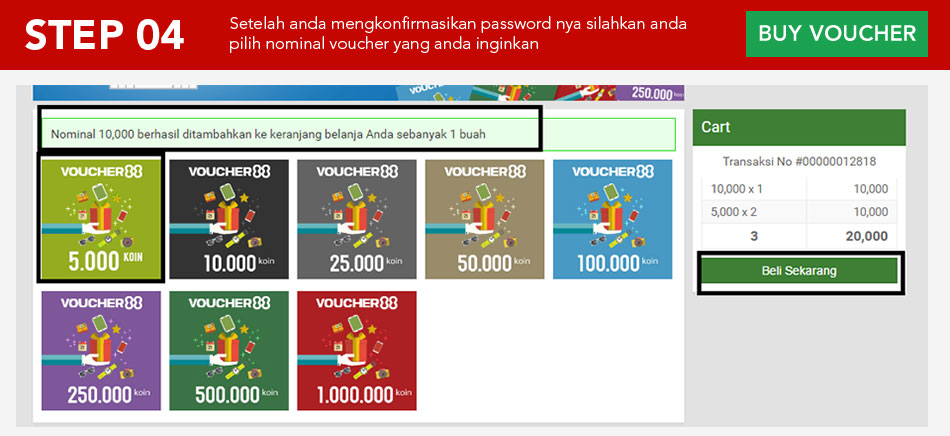 Setelah anda mengkonfirmasikan password, silahkan anda pilih nominal voucher yang anda inginkan